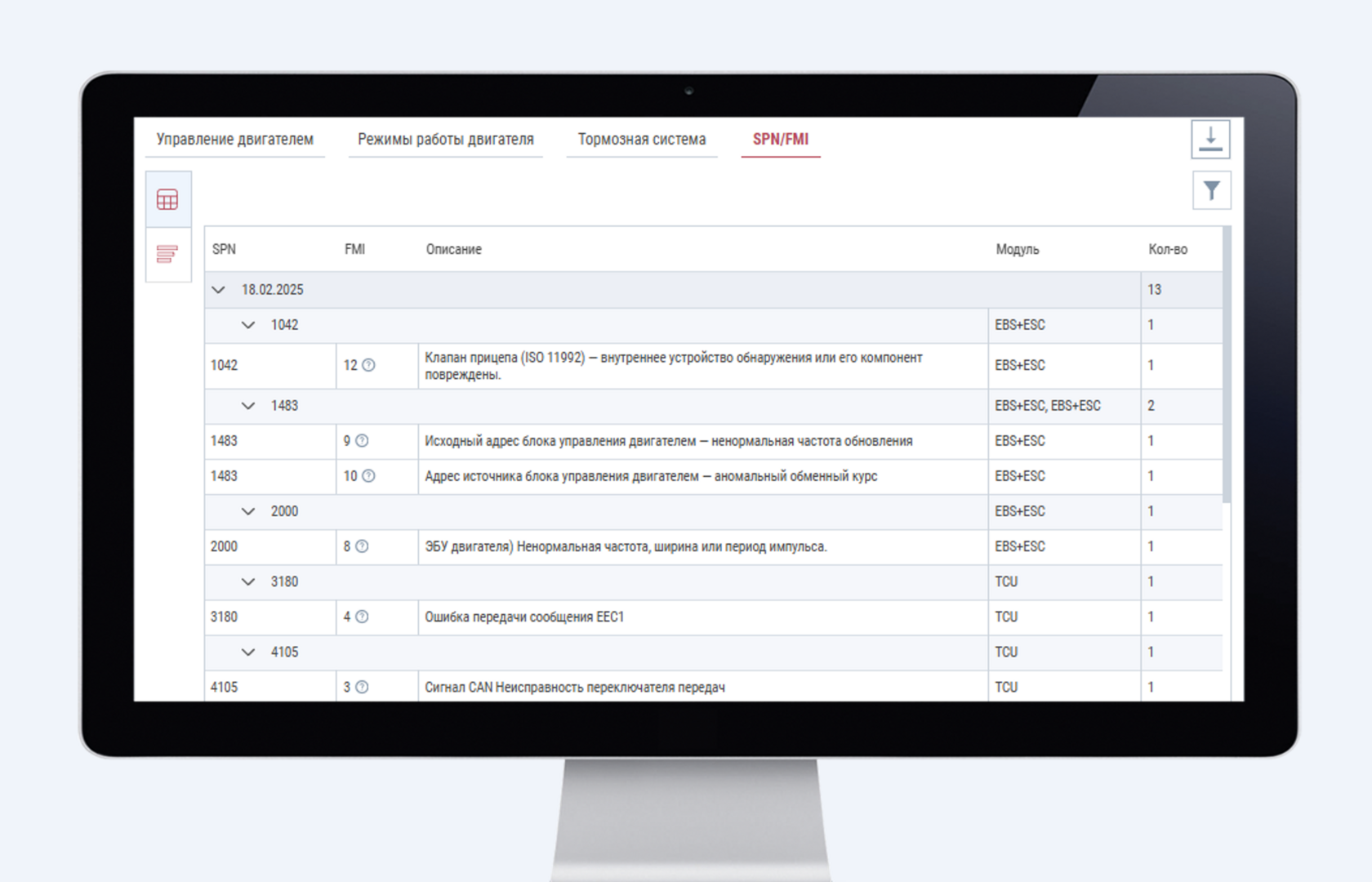 В нашем сервисе «Операционный анализ» появилась вкладка «Ошибки SPN/FMI».